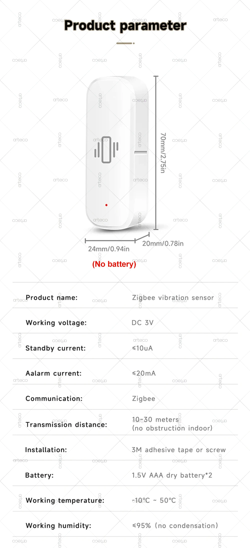 *Type 1: zigbee vibration sensor, need 2pcs 1.5V AAA dry battery(Not included)