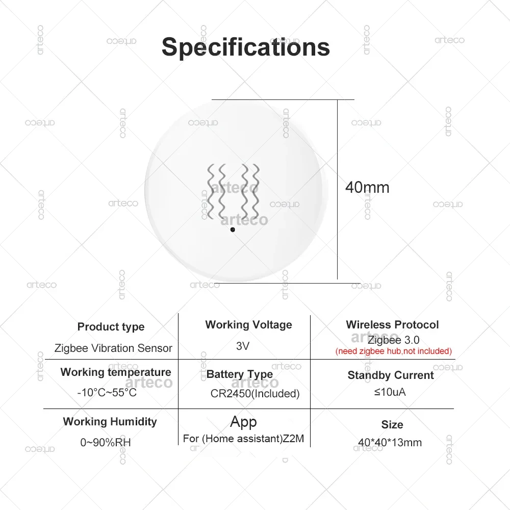 *Type 2: zigbee vibration sensor with XYZ Axis tilt detection, need 1pcs CR2450 (Included)