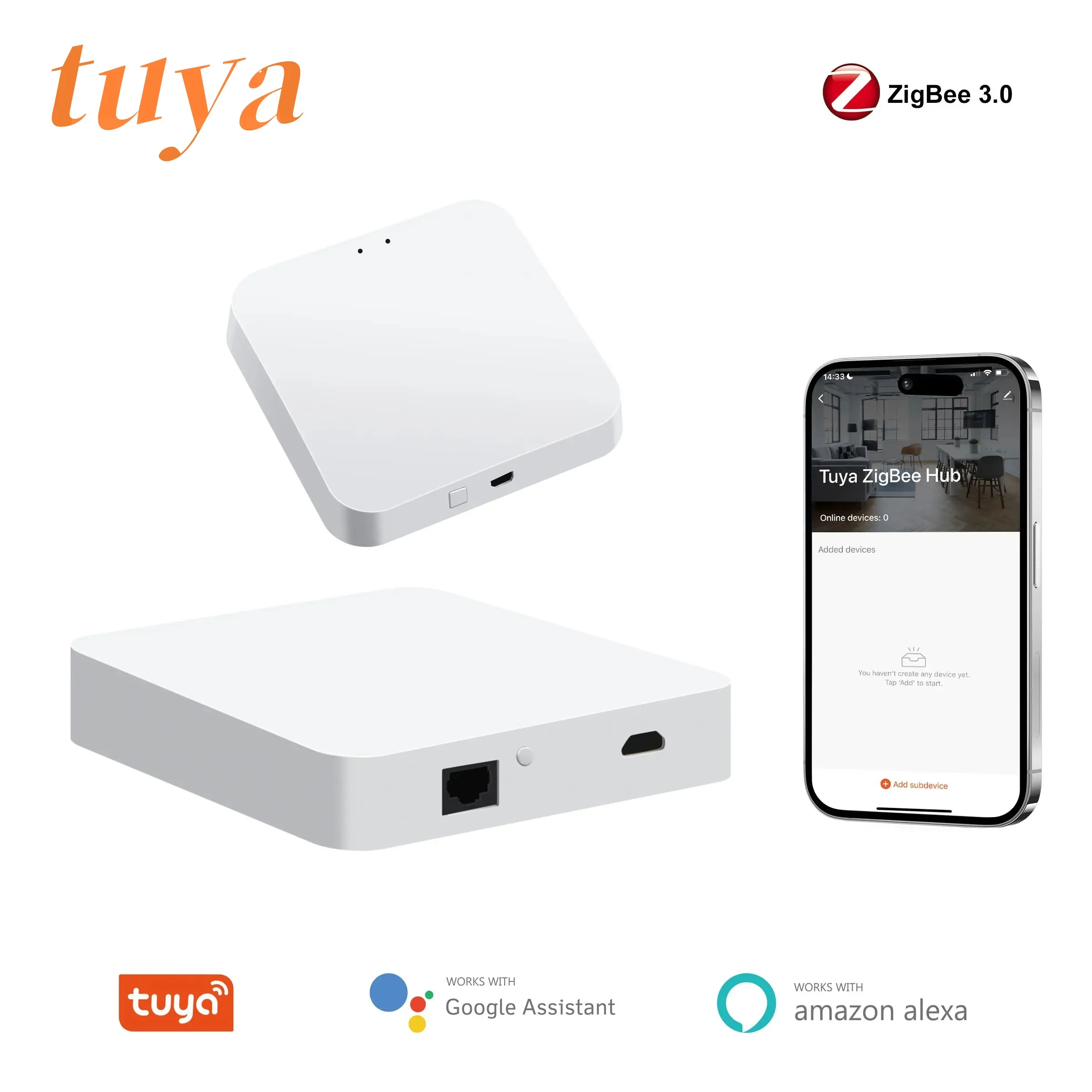 【A hub for voice control of Tuya Zigbee and Bluetooth devices】 If your smart device is compatible with Alexa or Google Home, this Tuya Zigbee gateway allows you to easily control your device by voice. For example, connect your Tuya Zigbee Thermostat to the Alexa via Tuya Zigbee hub, you can turn on, turn off or set temperature by voice.