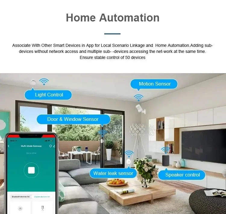 Please note that any ZigBee product needs to be used with a gateway, and our company's model is the lightest mini and easy to install. The currently accessible devices support about 30-50, which is enough for small houses or apartment buildings.