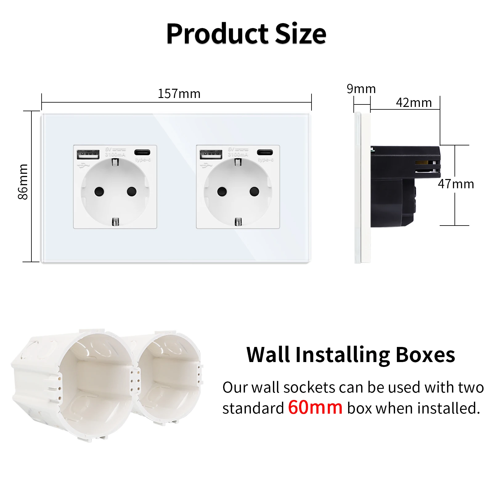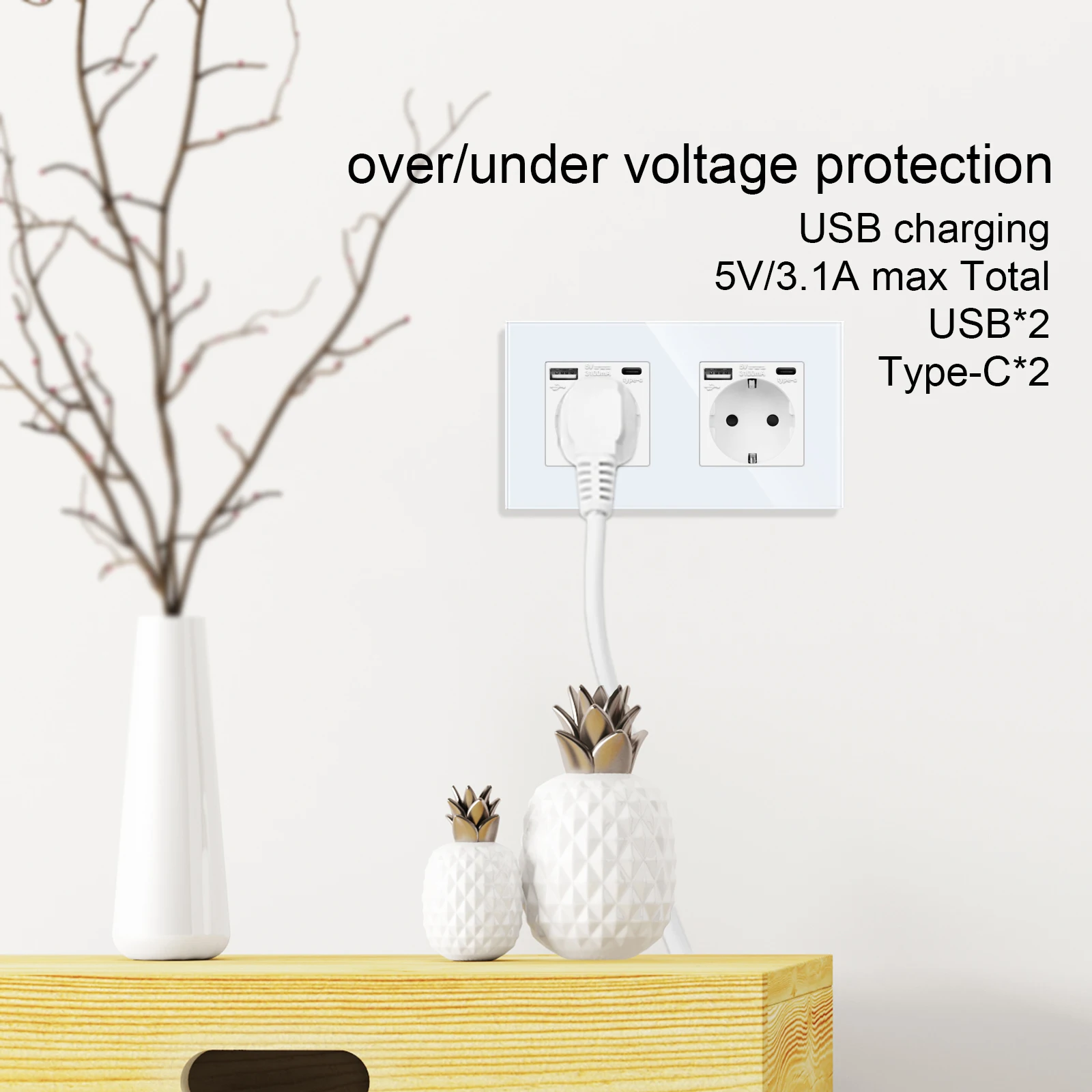 Wifi Socket EU Standard Smart Outlets Wall Socket 16A 100V-240V USB Type C White Black Gloden Crystal Glass Panel for Smart Home