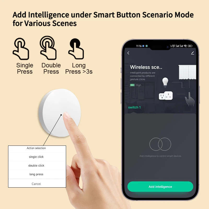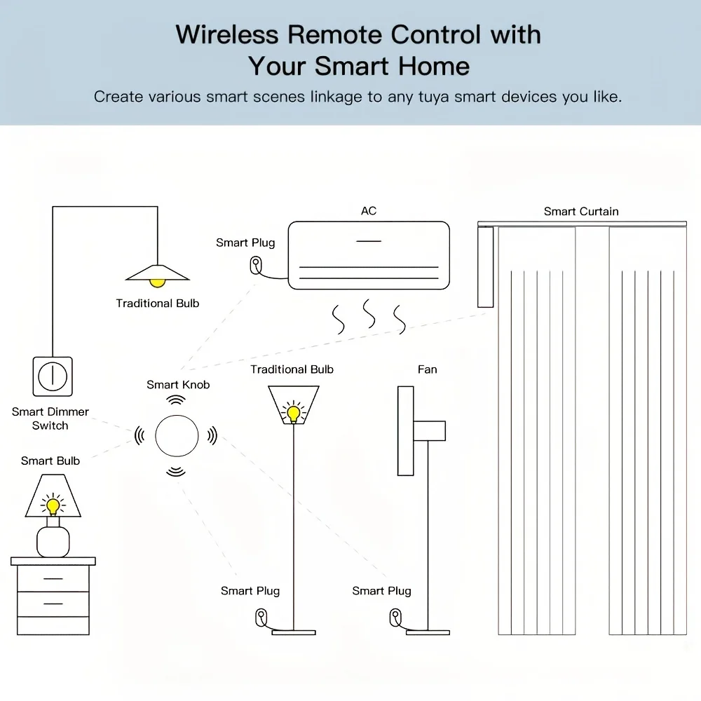 【Two-in-one device for wireless scene】A new idea for ZigBee scene switch to create various smart scenes for your Tuya smart devices in Smart Life App;Tap-to-run to get another easier control for all Tuya smart devices with simple operations on the switch.